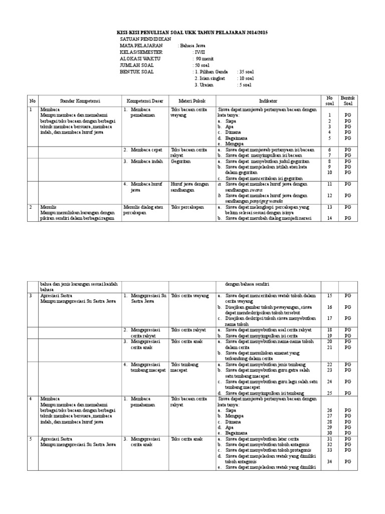 Kisi-Kisi Bahasa Jawa Kelas 4 Semester 1 / Soal Uts Bahasa Jawa Kelas 1 Sd Semester 2 Dan Kunci Jawaban - Maybe you would like to learn more about one of these?